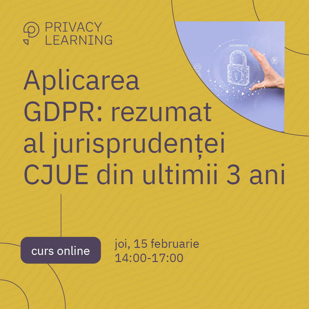 by filling in the form or by e-mail at contact@privacylearning.roAs part of this community, you will receive messages with news from the field of personal data protection and invitations to DPO Sessions events for data protection officers. We collect your email address, name and company you work for to include you in the DPO community subscriber list. You can unsubscribe at any time using the link at the end of each message. Find out more about how we process personal data in our Data Processing Notice.