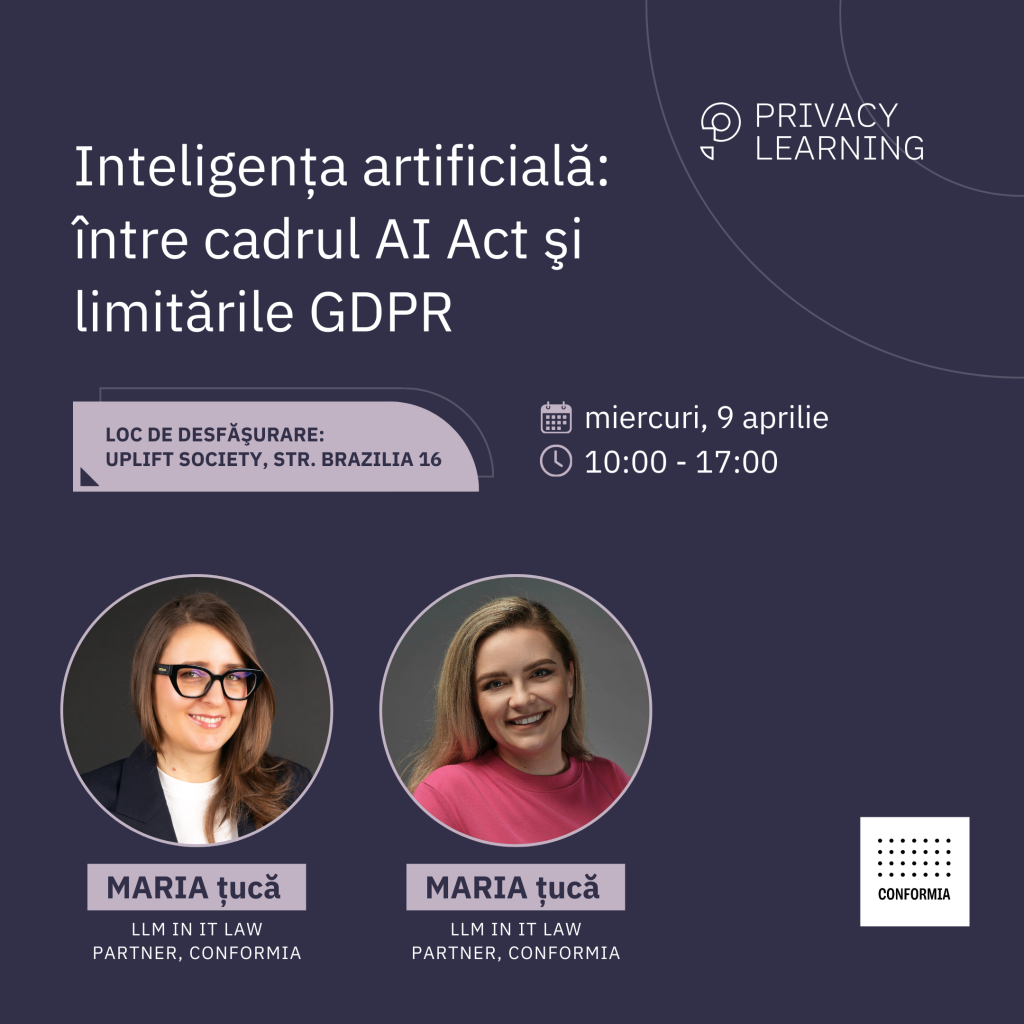 Cursul este susținut Dana Ududec, CIPP/E, Partener CONFORMIA.