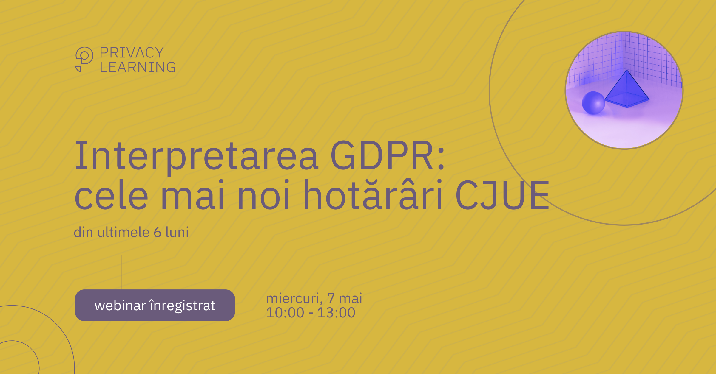 Webinarul își propune să ajute participanții să înțeleagă concluziile celor mai importante hotărâri CJUE din anul curent și impactul asupra activităților profesionale de zi cu zi în domeniul protecției datelor personale.